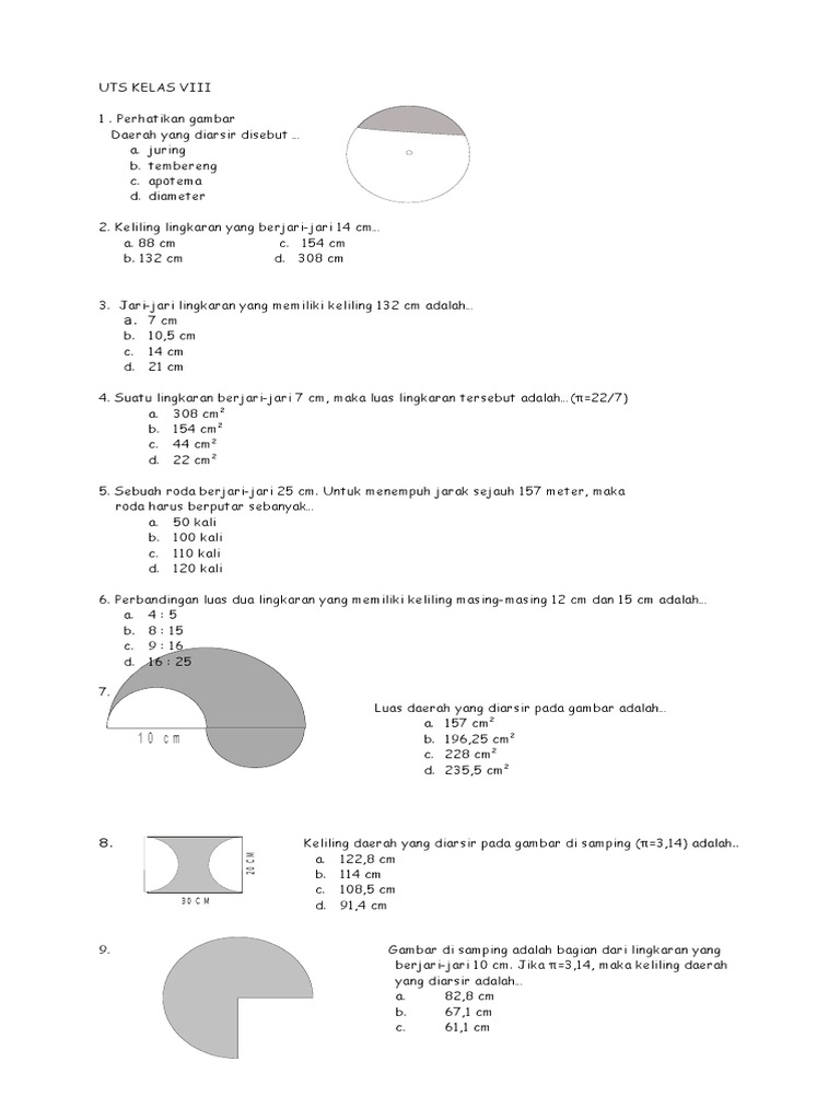 Soal untuk menguji pemahaman Matematika materi lingkaran bagi siswa kelas 8 semester 2 Take Quizzes Popular Recent Language Animal Art Assessment Book Business Celebrity Computer Country Education Exam Food Fun. Soal matematika lingkaran kelas 8 dan jawaban. Soal PTSUTS MATEMATIKA Kelas 8 Semester 2 SMPMTs Beserta Jawaban Pada postingan sebelumnya admin sudah berbagi informasi tentang Soal PTSUTS PENJAS Kelas 8 Semester 2 SMPMTs Beserta Jawaban pada kesempatan yang baik ini admin kembali mengupdate informasi yang berkaitan dengan Soal Penilaian Tengah Semester atau Ulangan Tengah Semester.