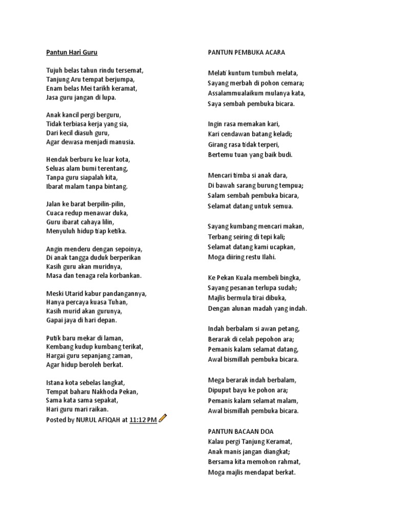 Pantun Pembuka Bicara Dan Penutup Majlis Doc Document